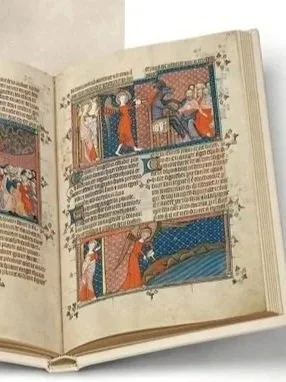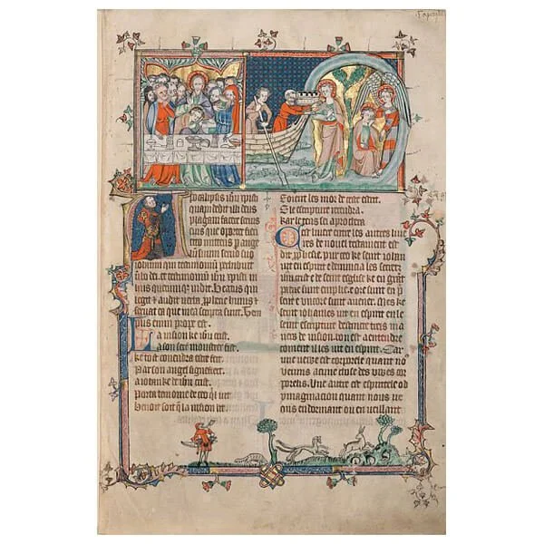 A commentary volume includes an English Translation of the Anglo-Norman texts, descriptions of the paintings and a learned study by Christopher de Hamel, Librarian at the Parker Library, Corpus Christi College, Cambridge, about the provenance and various features of this unique manuscript.