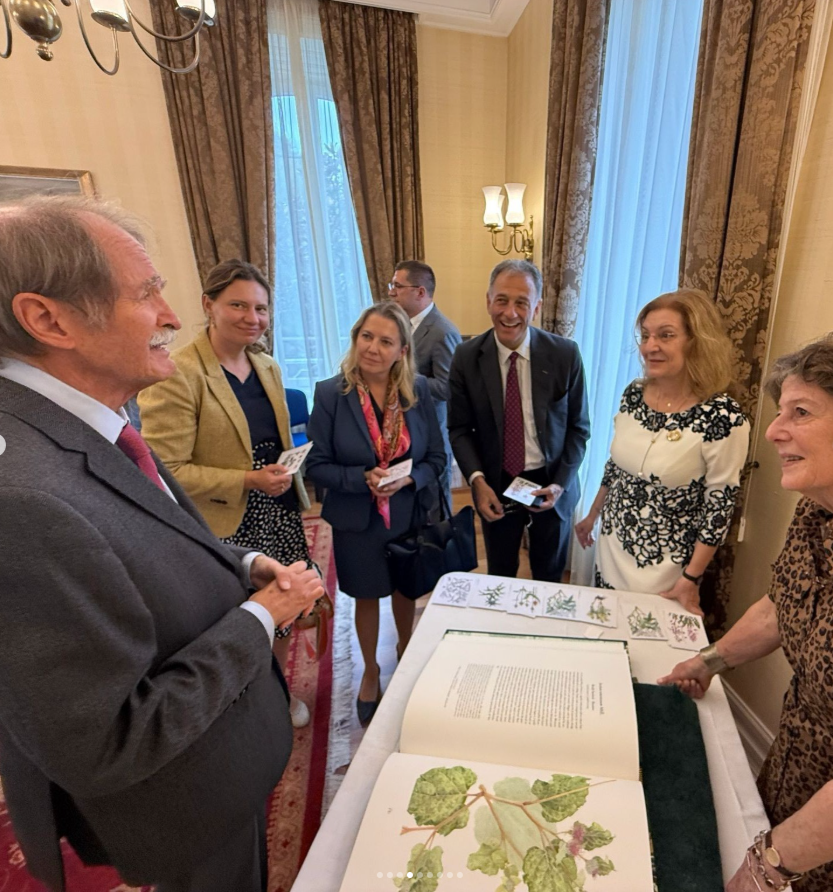 In October the Romanian Embassy in Lisbon hosted an event to celebrate the Transylvania Florilegium. The evening was held in collaboration with The Romanian Cultural Institute in Portugal, The British Embassy in Portugal and the British Council. HRH the Duque de Bragança, Dom Duarte, is pictured here with the Florilegium.