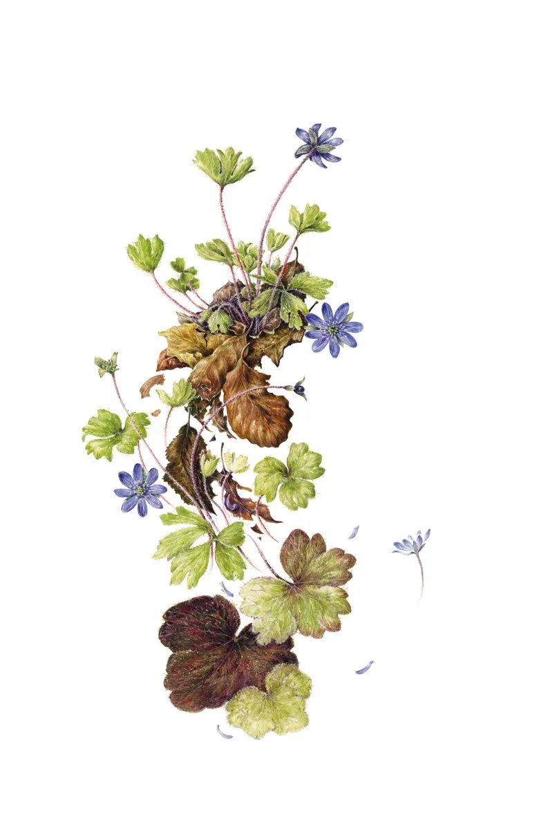 In a project that took over six years, and has been contributed to by a team of the world’s finest botanical artists, 124 botanical illustrations were completed; the species recorded include campanula, crocus, gentian, geranium, hepatica, hellebore, iris and orchids.