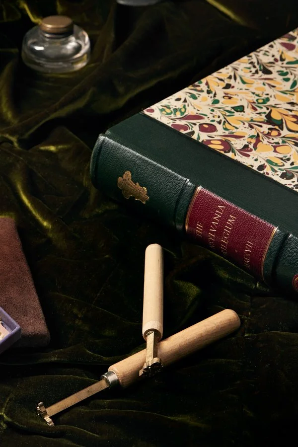 Hand-bound in leather and marbled paper, and finished with gold leaf. The Florilegium was created by an expert team of artists, craftsmen and women, botanists and scholars.